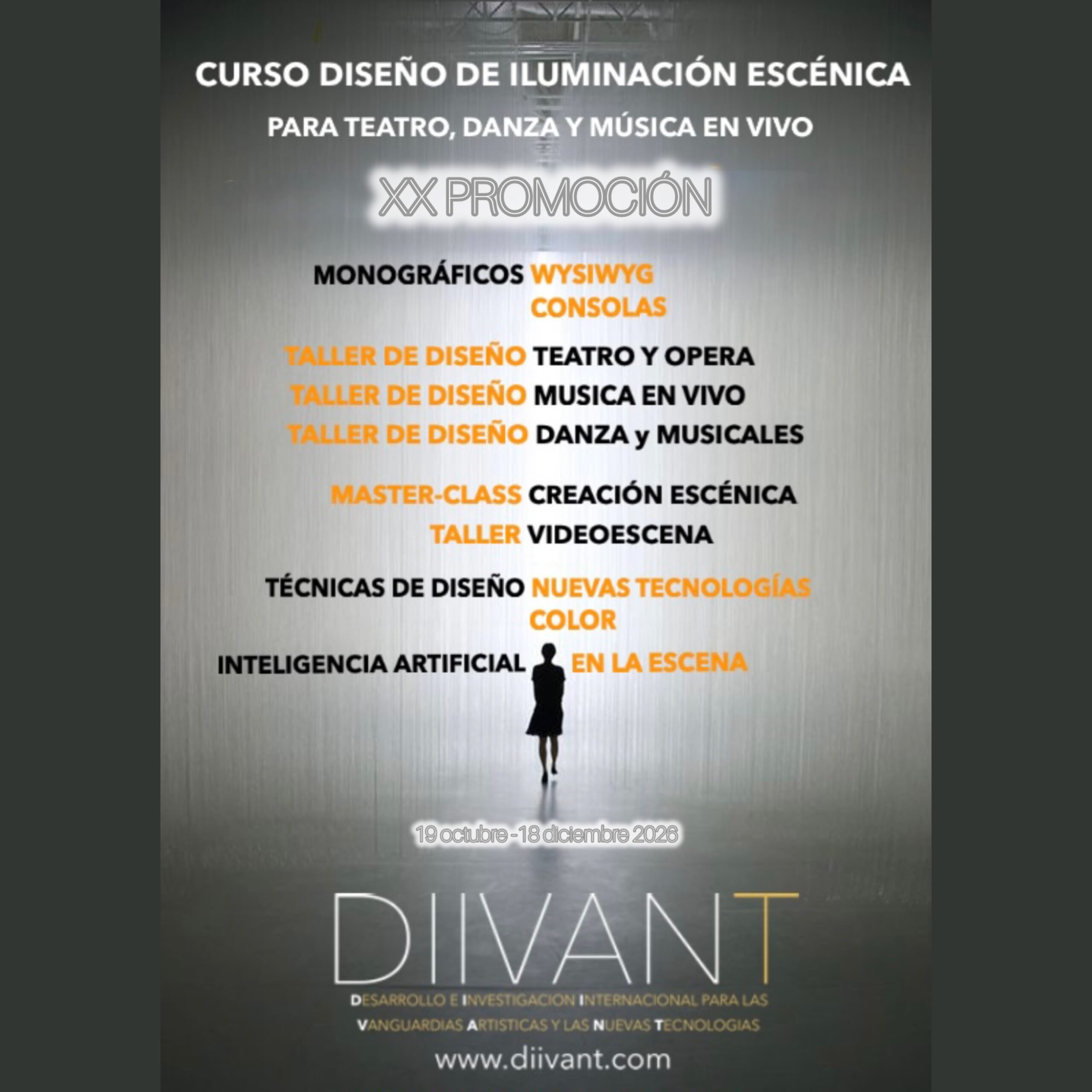 DIIVANT destaca por impartir cursos especializados en diseño de iluminación escénica enfocados a todos aquellos que quieran dedicarse profesionalmente al diseño de iluminación para espectáculos, a través de la aplicación práctica de las nuevas tecnologías existentes y siempre de la mano de los mejores profesionales en activo del sector.